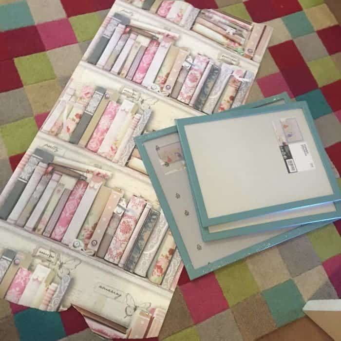 I chose a few different wallpaper samples from B&Q on the way home but I think the pretty bookshelf style one that I ended up choosing worked really well for what I was planning. The one sample did all three pictures above but you might need a bit more than I got depending on the pattern on the wallpaper.