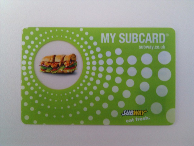 We don’t go to Subway very often but when we do, we use our Subcard to get 1 point for every 10p spent. You can then redeem your points against the food – 2oo points for a snack, 500 points for a 6 inch sub and 1000 points for a 12 inch sub.