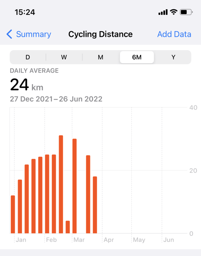 This was top of my 2022 goals and has been a big life change for me so far this year. I have my exercise bike which I really enjoy and until the last couple of weeks I’d go on that for anywhere between 45 minutes and an hour at least four times a week. I’m very motivated by seeing progress in black and white though so the tracker in the Health App is perfect for letting me log my miles. It motivates me to see how much I’ve done and encourages me to not miss a session as I don’t any week to show I haven’t done anything or for my average to come down. I’m up to about 32k on a good day so I’d like to see that come up which again motivates me not to stop until I get there.