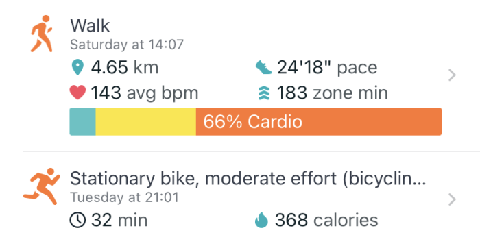 I have done less on my bike this last couple of weeks though as I’ve been trying to get out and do more strenuous activity that gets my heart going. My Fitbit tracks my steps, heart rate and all sorts of other stuff as well as logging my exercise on there so I have that linked to my phone so I can really see how well I’ve done.