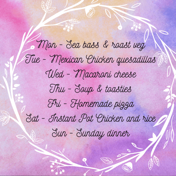 Sorry for the #mealplanningMonday interruption, let’s get back to this week’s meal plan now that we’ve got that out of the way!