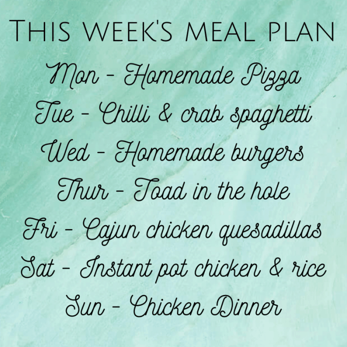 OK, you’ve probably heard enough about that now so let’s get on with this week’s meal plan…