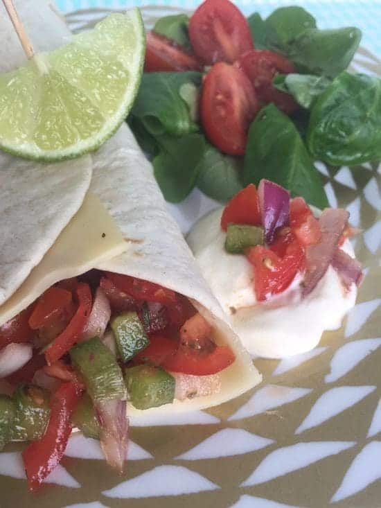 Today we’re feeling spicy so we’re going for a Mexican style cheese wrap with some homemade salsa.