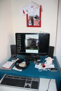 The desk is absolute mess and I’m not allowed to tidy it up because allegedly I always throw something out that I shouldn’t or move things about so he can’t find what he’s looking for, I dispute that allegation but of course it’s not possible that he could ever just lose something so it quite clearly must be me…. He did let me pick the desk though and I think I picked a lovely one 😉 It matches the kitchen and everything – it doesn’t matter that he can’t tuck his feet under properly or that there’s no storage space, the fact is that it matches the kitchen so it’s going nowhere.