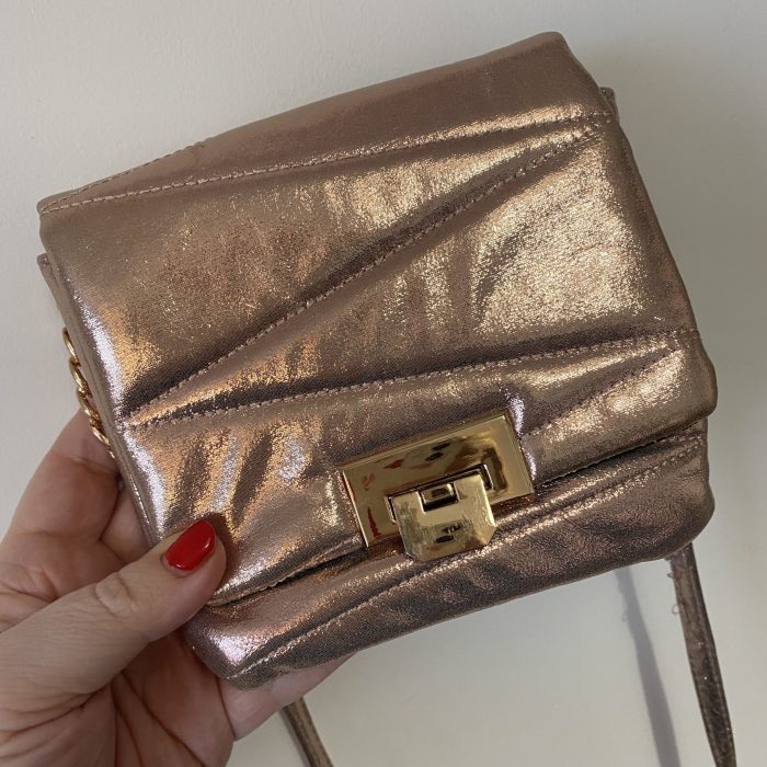 This super cute little bag was from a charity shop near me a couple of weeks ago. I bought it because I have a pair of rose gold shoes that never match any handbag and this little beauty is an exact match for the colour of the shoes so for the couple of pounds that it cost me, it’s an absolute bargain and probably my cheapest pre-loved handbag to date!