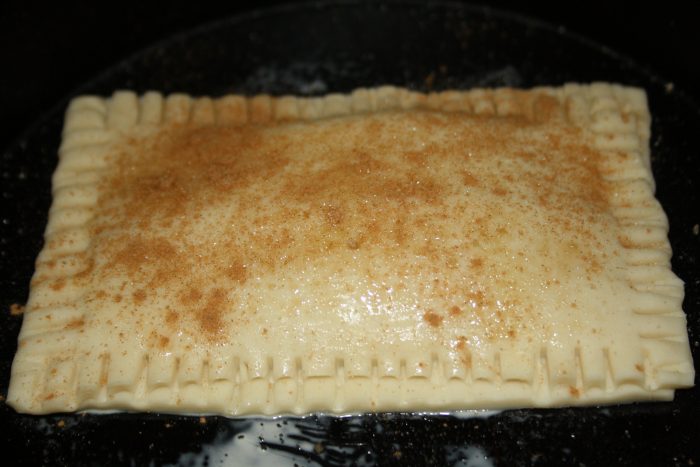Using a pastry brush, paint the tops of the pasties with the beaten egg and then sprinkle with the brown sugar and the cinnamon.