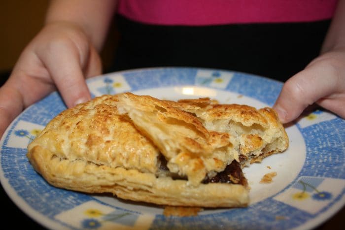 I was planning to cook my Nutella Cookies or make some cupcakes with Nutella frosting or even make some lovely Nutella mousse but when I found some ready rolled puff pastry on offer at the shop, I thought I might have a go at making some Nutella Pasties. Sounds weird I know, but actually they were really delicious and we’re definitely going to be having them again….