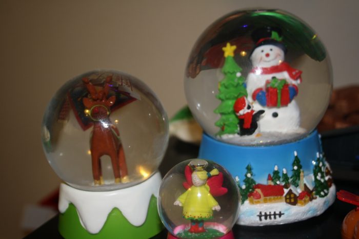 Our favourite Christmas snow globes. We try to buy a new one every year to add to our collection (of 3 so far).