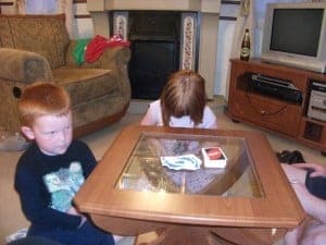 When we got to our caravan, we all the kids ran around opening all the doors and cupboards and screeching things like ‘Look, a toilet’ or ‘Look, a fridge’. The people in the neighbouring caravans must have thought we were a bit simple but we’ve never been in a caravan before though and we weren’t expecting such good standards, it even had a fire and radiators and everything 😉