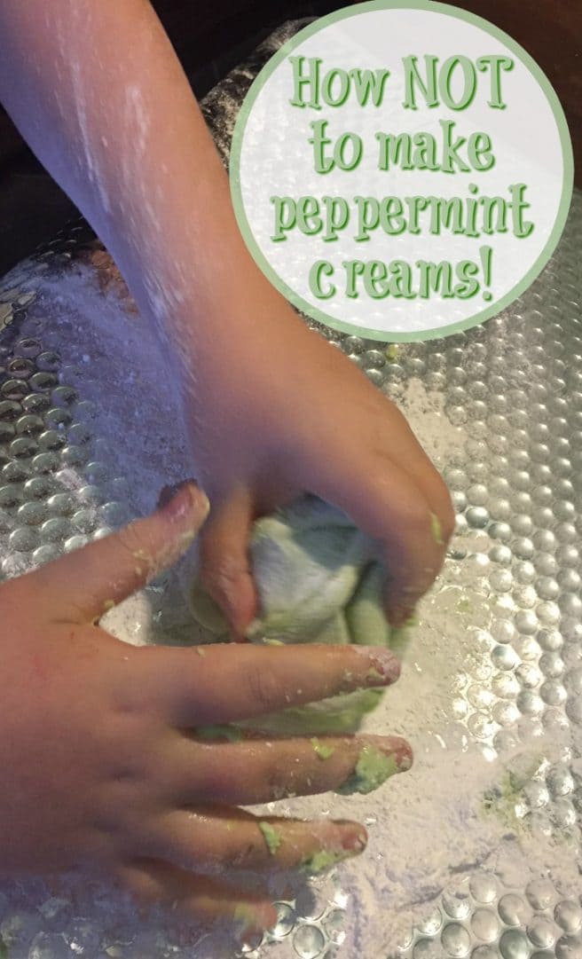 - We then split the mix into two and the kids dusted (covered) the table in icing sugar and set about kneading the peppermint creams as if it were a loaf of bread they were making.