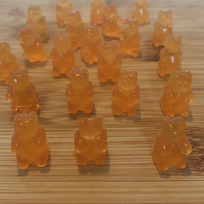 - Then I just filled my gummy bear moulds with the mix and popped them in the fridge to set.