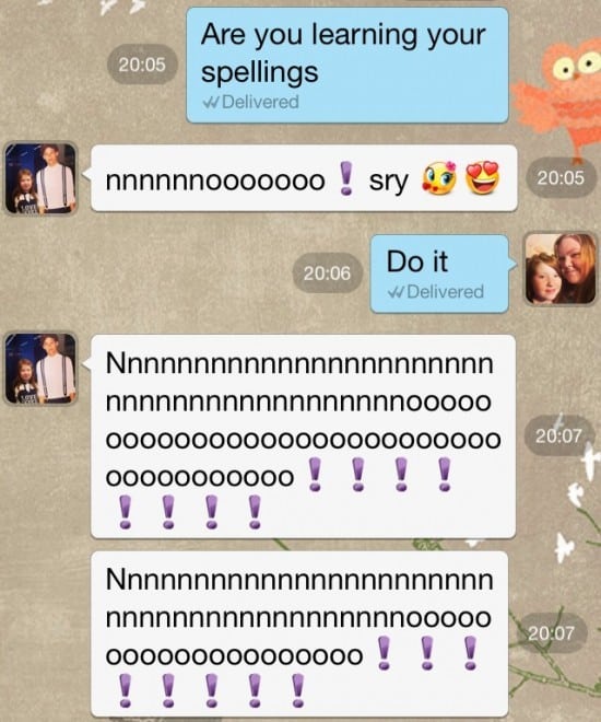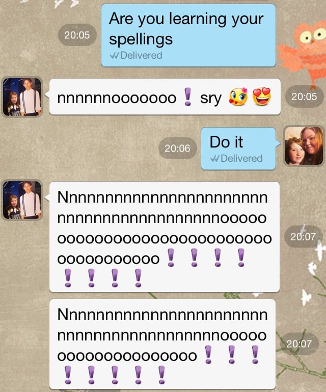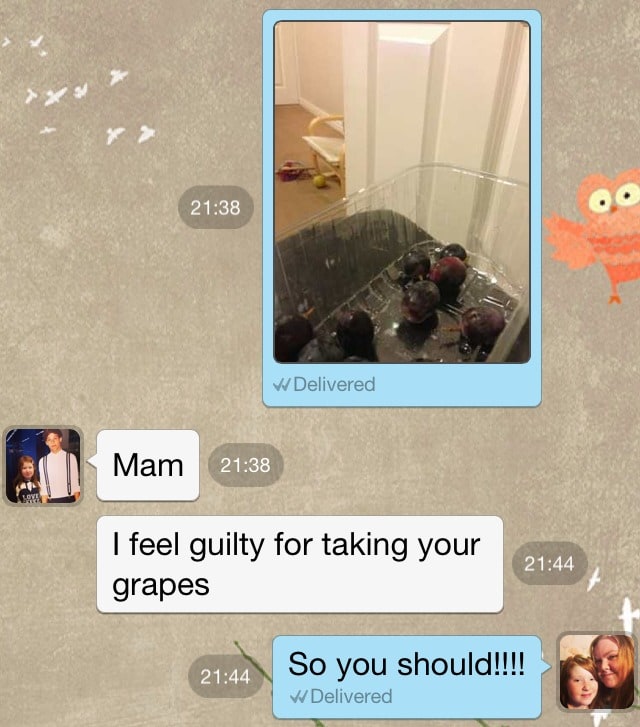 I’ve also had text messages apologising when she’s done something wrong and a couple of cheeky ones where she’s asked me to take her up a drink when she’s in her bedroom 😉