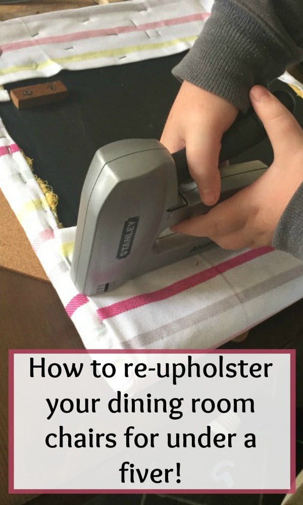 Remember last week when I told you all last week about my new dining room table and how it inspired me to finally reupholster my dining room chairs. I told you that it had cost me less than a fiver to do all four chairs and promised you that I’d let you in on my secret to keeping the cost down this week…