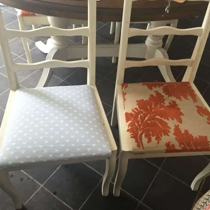 I searched all over for some reasonably priced upholstery fabric that matched the vision that I had in my head for the four chairs that needed reupholstering and I couldn’t find the ‘perfect’ fabric anywhere! I really wanted the chairs to be co-ordinated but different if you know what I mean and I just couldn’t find what I was looking for which is why it took me so long to get around to doing them. I’ve also looked on numerous websites for chair covers uk and was spoilt for choice but even then I knew I wanted something a bit different.
