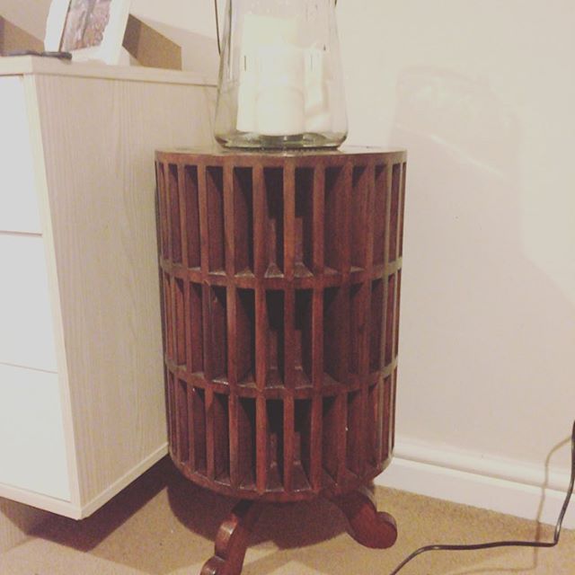 It’s so unusual and at the time I had no idea what it was but I loved how unusual it was so I paid the £4.95 they wanted for it and brought it home to figure out what on earth it was and what I was going to do with it. Thanks to Instagram, I now know that it’s a cassette tape holder from way back when so I won’t be using the storage compartments but I did give it a quick spray paint (Valspar 2 in 1 primer and spray paint is AMAZING) and it now looks brilliant as a candle table next to the sideboard.