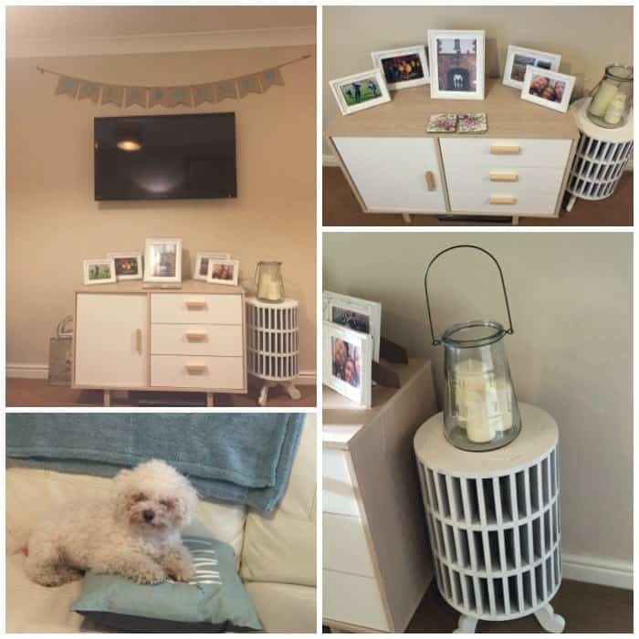 I bought some photo paper and shabby chic style frames from the pound shop and printed out some of my favourite photos to sit on the sideboard which cost me a total of £6.00 and I think they look lovely on there.