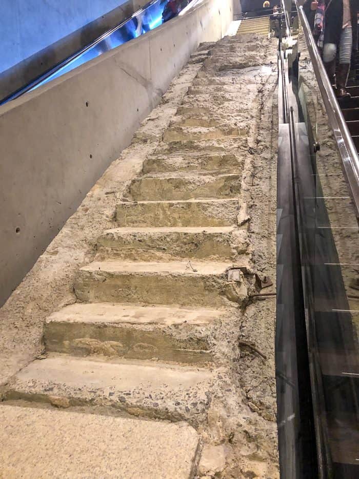 There are also areas where you’ll see the remains of part of the structure where it’s been painstakingly removed from the rubble and rebuilt in the museum. There were photos to show what they looked like beforehand so you can picture it. These stairs are just one example…