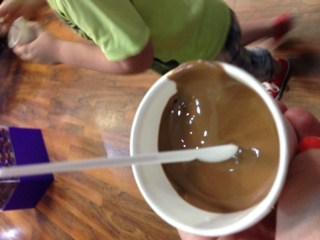 When we got there, we went straight to the Essence tasting factory and we learnt how Mr Cadbury perfected his delicious chocolate. We got given a cup of melted chocolate with a choice of rice crispies, marshmallows, milk chocolate buttons or jelly babies. I choose marshmallows.It was gorgeous.