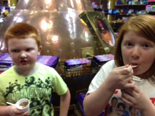 Next we watched 2 shows 1 where the seats moved like a 4d ride and the 2nd 1 was how they made the cocoa into chocolate. I liked them both. After the show there was machines that you could go on and see how roses and cream eggs where made. Next we went to the packaging area and we got MORE chocolate we got another tub of melted chocolate. It was delicious!