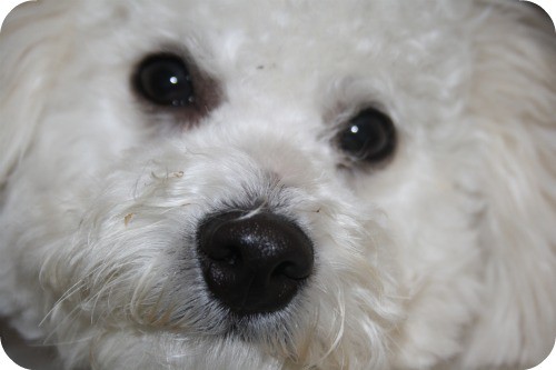 Aww theres a shiny nose that you know if you got to close to you'd get a big sloppy wet kiss with doggy breath! What a cutie!