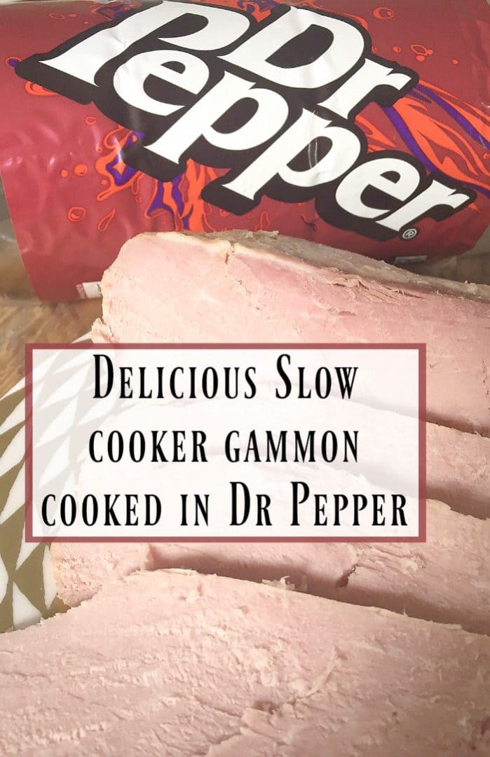 In the past, we’ve tried cooking gammon in coke and loved it so I didn’t think it was too big a leap to try Dr Pepper. I was planning on rubbing some brown sugar into the joint of gammon for some extra sweetness but in the end, we decided just to pop the join in the slow cooker and pour Dr Pepper in up to about half way up the joint which was about the equivalent of a can and a half of Dr Pepper.