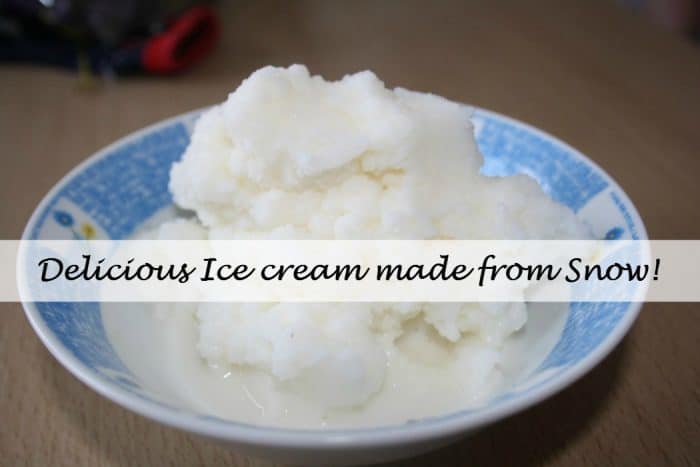 You then need to mix 1 cup of milk, 1/2 a cup of sugar and 1 teaspoon of vanilla essence together in a large bowl and gradually add the snow to the milky mix and mix it together until it resembles ice cream and there you have it – Snow flavoured ice cream.