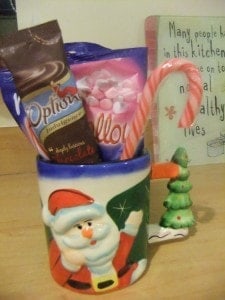 Last year we made Snowman Soup sets, like the one above, as gifts for a couple of our friend’s children and they went down a treat. We added a chocolate spoon, a special Snowman Soup gift tag that we found here and wrapped them in cellophane and they looked brilliant. I did actually see some Christmassy mugs reduced to 50p in Morrisons the other day pop into town tomorrow after work and buy some to make some more if I get chance.