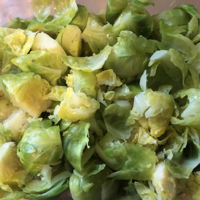 - Prepare your sprouts as you normally would – I just cut off the bottom part and used my vegetable knife to cut a cross in the bottom.