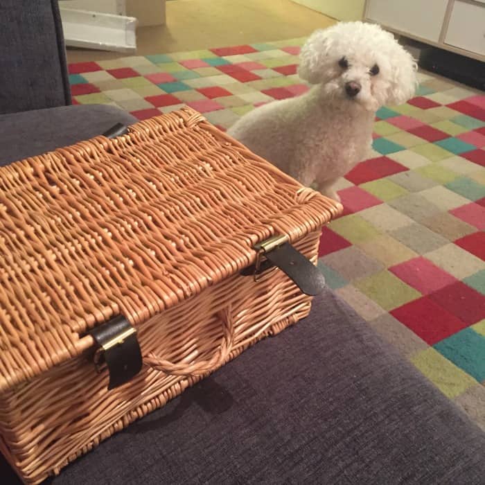 Just ignore the glaring dog in the background – he HATES the basket for some reason!
