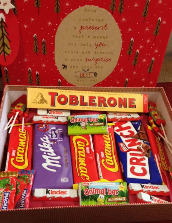 3. A chocolate hamper – I did this for a friend a few years ago and bought all of their favourite chocolates and they absolutely loved it!