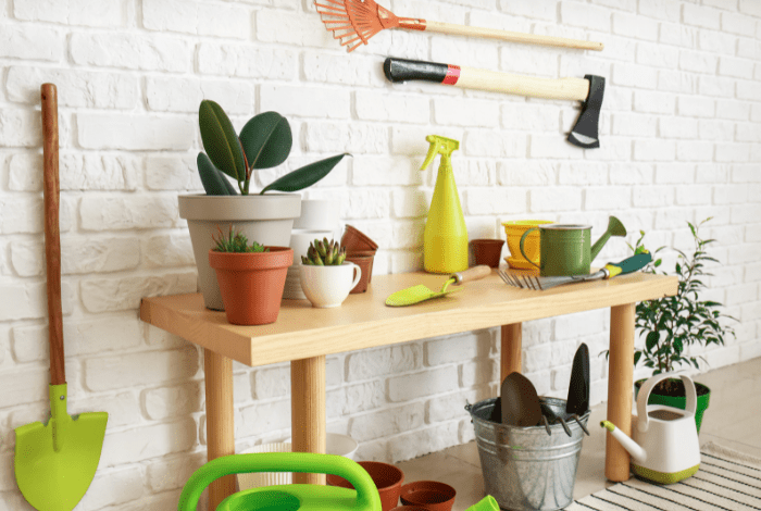 You don’t necessarily need to hide everything away in your garden. Sometimes, a brilliant storage solution involves displaying the things you need. Smaller items such as watering cans, trowels, and twine can be stored out in the open, ready to be used as and when you need them.
