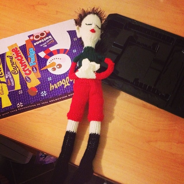 We got our elf from the lovely Mary who blogs over at Keynco and he’s been causing mischief since he got here – starting with eating one of the selection boxes we had in, although it clearly gave him a poorly tummy judging by how we found him this morning.