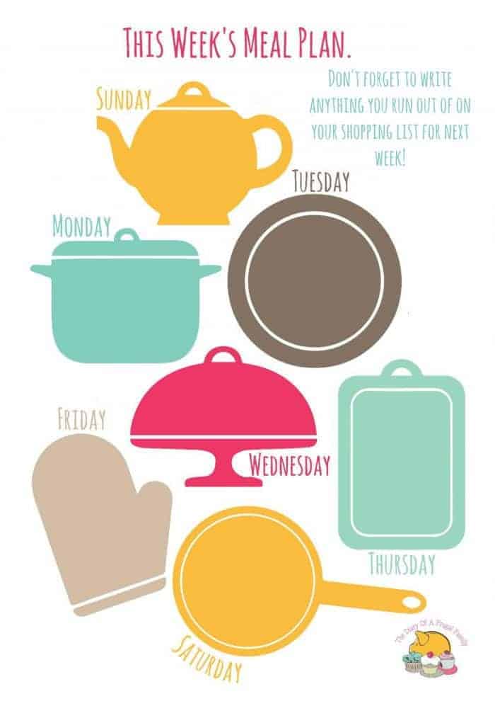- I don’t always do this now but I always used to have our meal plan on display so everyone could see what we’re having and when. I used to print out a fancy copy of our meal plan and attach it to a clipboard or pop it on the front of the fridge. I have a meal planning template you can use for that if you want to – it’s the one that’s in my free financial planner: