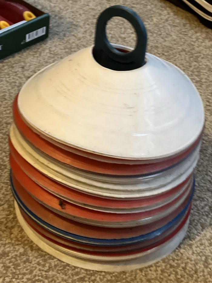 It’s a pile of those little mini cones that they use in schools and sports clubs.