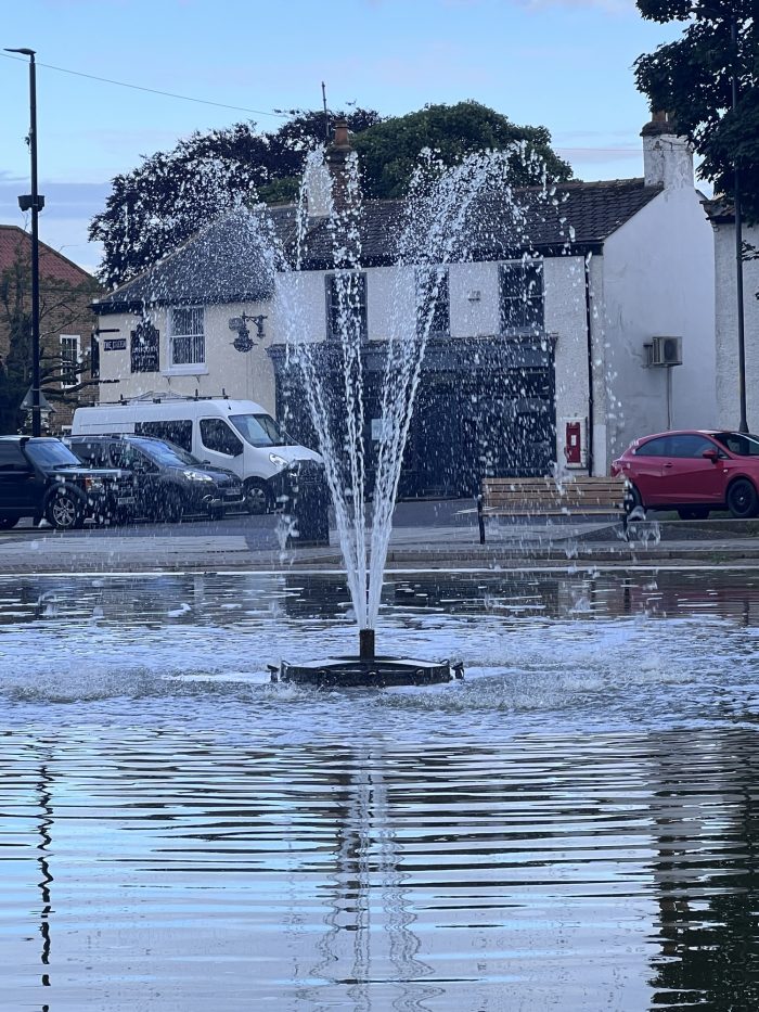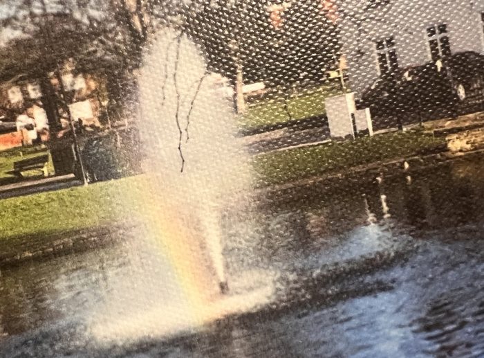 So now you understand my rainbow obsession, you can probably understand why I love this picture even more now than I did when I first laid eyes on it – it’s barely visible but there’s a rainbow of light in the water fountain.
