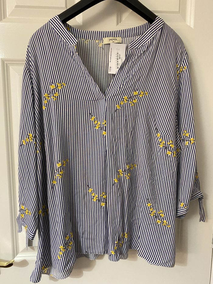 And my final buy of the month was a lovely shirt from Primark which has the loveliest yellow flowers on a blue stripey fabric which I really love. The yellow of the flowers matches perfectly with a pair of yellow sandals that I have so my plan is to wear the shirt with them and a pair of jeans for a nice outfit.