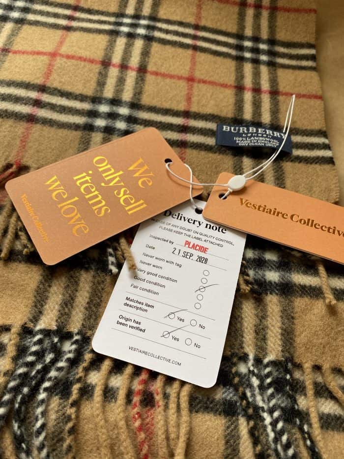 Then last month, I sold one of my handbags on Vestaire Collective which is a site where you can buy and sell designer goods so I thought I’d have a cheeky look to see if I could see any second-hand scarves that I liked. I found a lovely vintage version for a fraction of the price of the newer ones in what was classed as ‘very good condition’ so I made a cheeky offer and now I have my Burberry scarf.