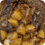 Slow cooked Brisket cooked with potatoes. Â Mr Frugal may make some Yorkshire puds and there may or may not be some carrots or broccoli to go with it.