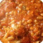 Slow cooker Sausage, Bean and Chorizo casserole.