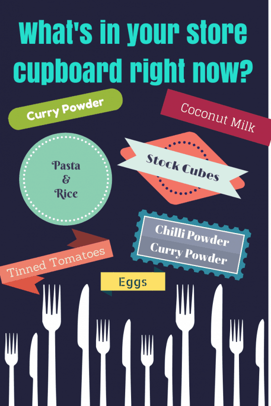The secret (it’s not really a secret, most of you are probably the same) is to have a store cupboard filled with versatile ingredients that can help you change your main ingredient into lots of other meals.