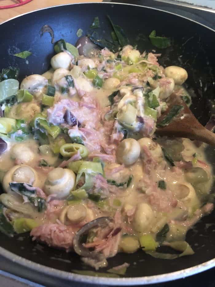 I made ham and chicken pie with broccoli and carrots and it was amazing but I forgot to take a photo of the finished pie. I did get a picture of the filling though…