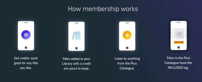 So I started doing some digging on where I can get my audiobooks from and I’ll be honest, I didn’t have to look too far as it look like Audible are far and away the biggest audiobook site that I could find. They have a paid subscription service which gives you credits each month that you can use against any of their books but you can also use their Audible plus which includes all kinds o books, podcasts and Audible original books.
