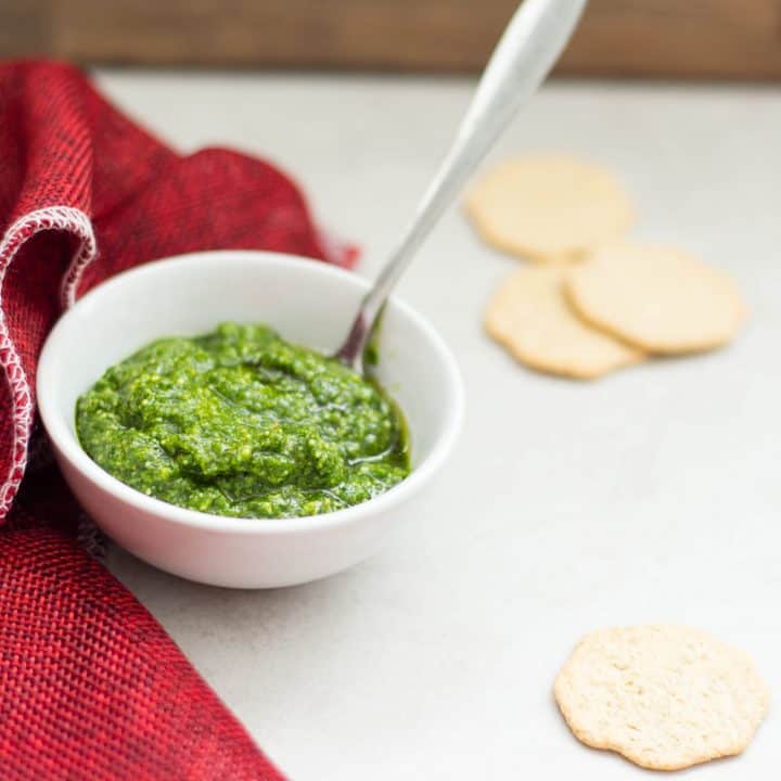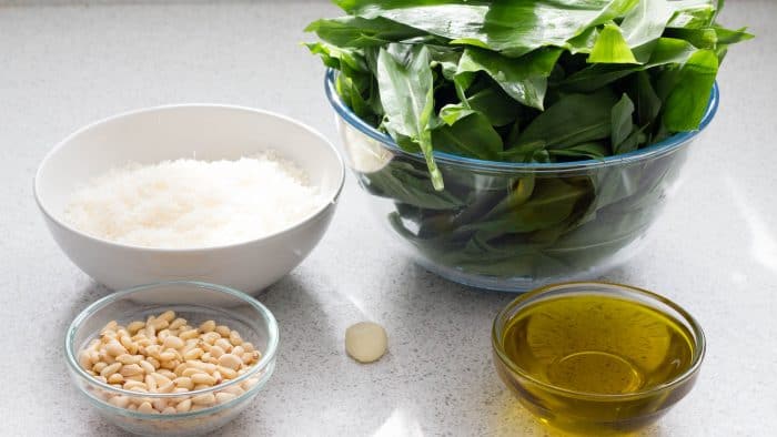 Wild garlic pesto is great as a salad dressing or as a dip for crusty bread and if you can’t find wild garlic then you can go with basil leaves instead for a more traditional pesto.