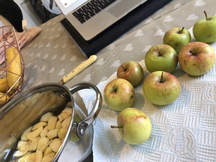 - Peel and core your apples – you can actually use any apples for this but my quantities are based on the smaller windfall apples that I was gifted at the Festival of Thrift by a lovely lady farmer.