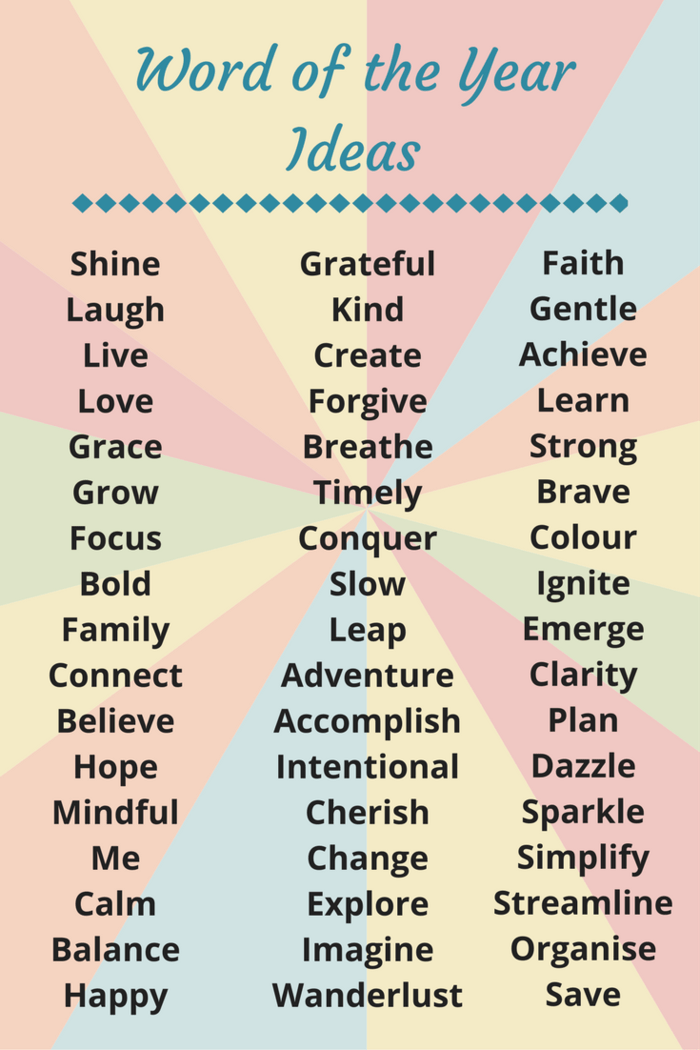 I’ll share my word with you tomorrow but in the meantime, I thought I’d make you all a handy little list of word of the year ideas so you can start thinking about your own word of the year…..